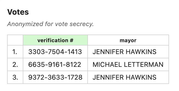 Voters can personally verify that their vote was counted correctly & recount all votes themselves.